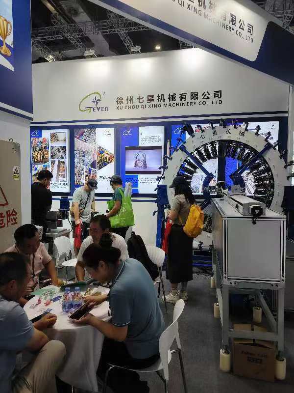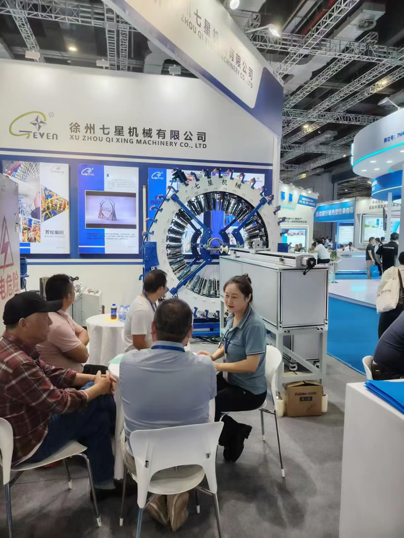 在本次展覽會,徐州七星機械有限公司展出設備臥式110-48錠高速編織機,復繞機,內曲面編織機。