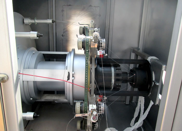 此款機器適用于在膠管外層鉤編一層織物,產(chǎn)量高,配合擠出設(shè)備適合于流水線生產(chǎn)。