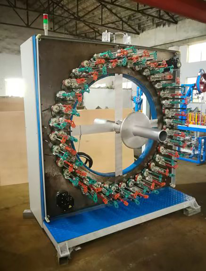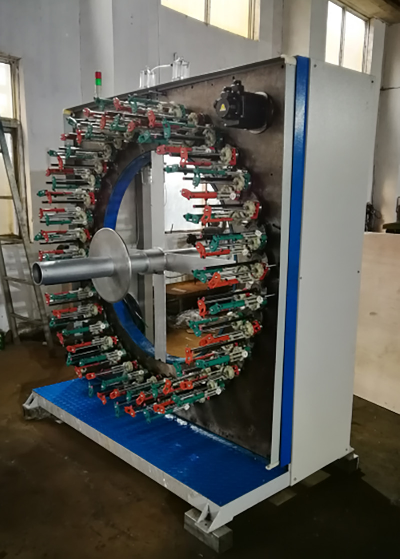 4. 紗線張力器+芯線傘桿,確保零度紗均勻放線編織(單向放線,不可往復(fù))。