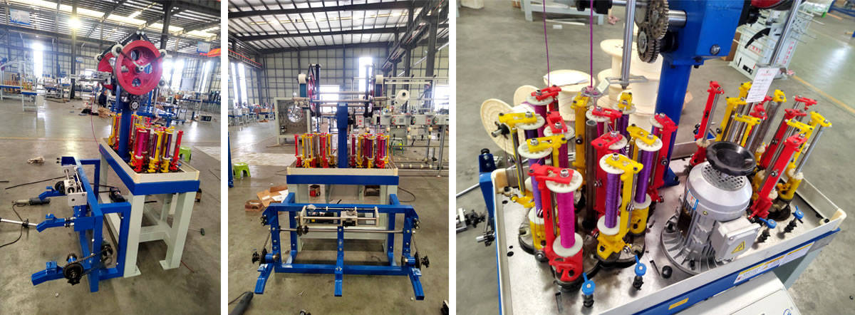 飾品繩編織機(jī)19000,編織飾品繩子,中心芯管,380V,三相,益電通,加長110電線錠子, 紗管55*163 ,可纏繞膜密封,可掛線出廠 。